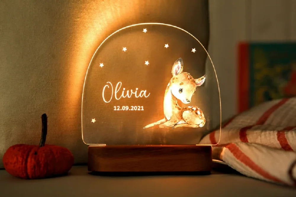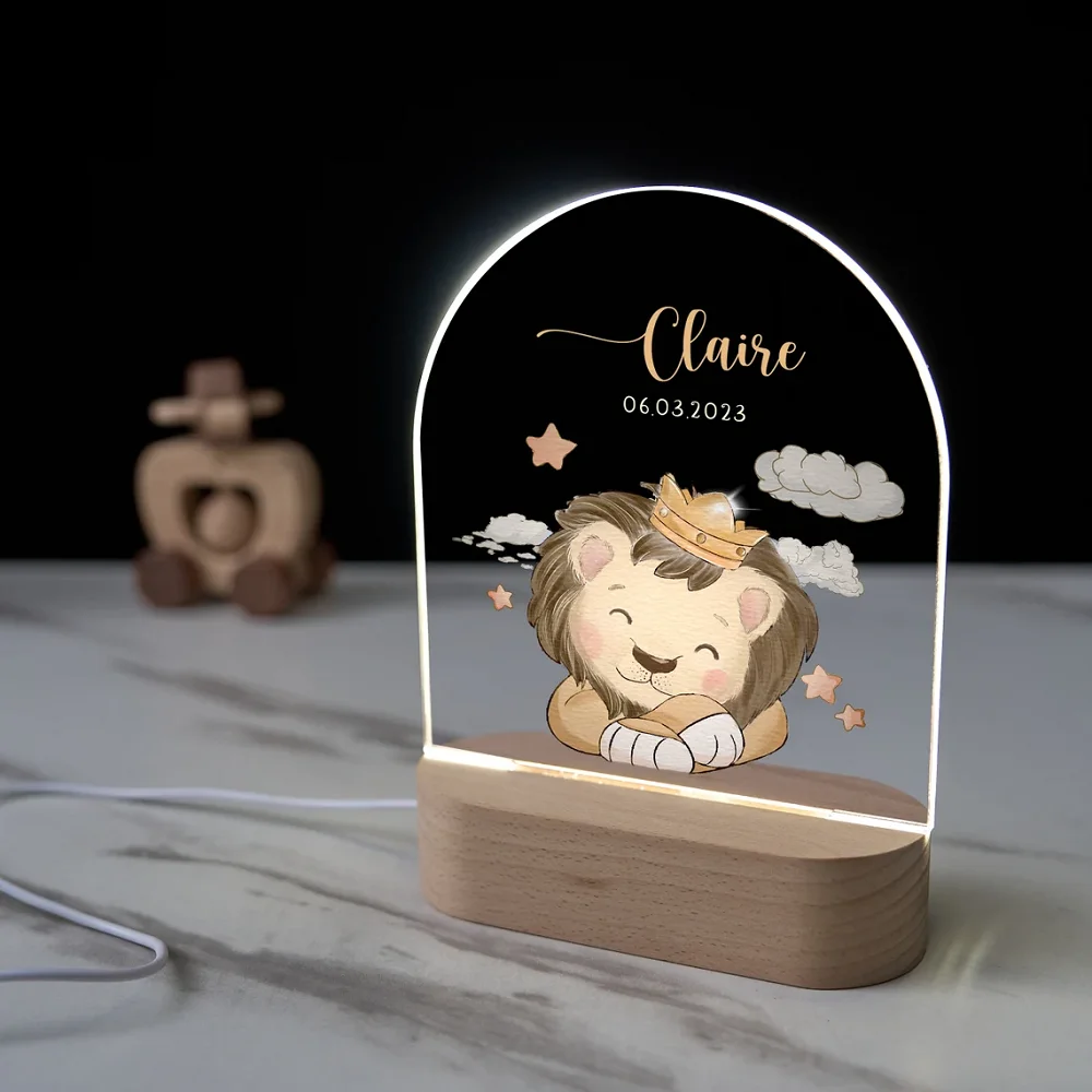 Veilleuse personnalisée pour bébé avec Base en bois, cadeau pour bébé